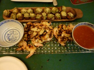 Wow, what a party: two solid days of prep, massive quantities of food and 14 guests! Despite the daunting menu and to-do list, I was actually the most relaxed I have ever been in preparation for a party. Part of this was having the wonderful Sous-Chef Sarah all Sunday afternoon, the other part was knowing that everyone coming is a friend and worst case everyone pitches in – or we order a pizza!