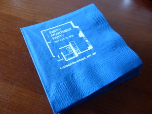 An easy way to make sure you’re never in a bind is to keep cocktail napkins on hand. I had 200 of these custom printed for the “Empty Apartment” party I had after I moved last fall (they actually didn’t make it in time for the party). The image is from the invitation and is the actual floor plan! I loved the image and knew I would enjoy using them for a while, which is why I ordered such a large quantity (and it was obviously a better price per napkin). I chose this shade of blue (it is between navy and royal) because it is season-less.