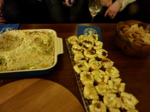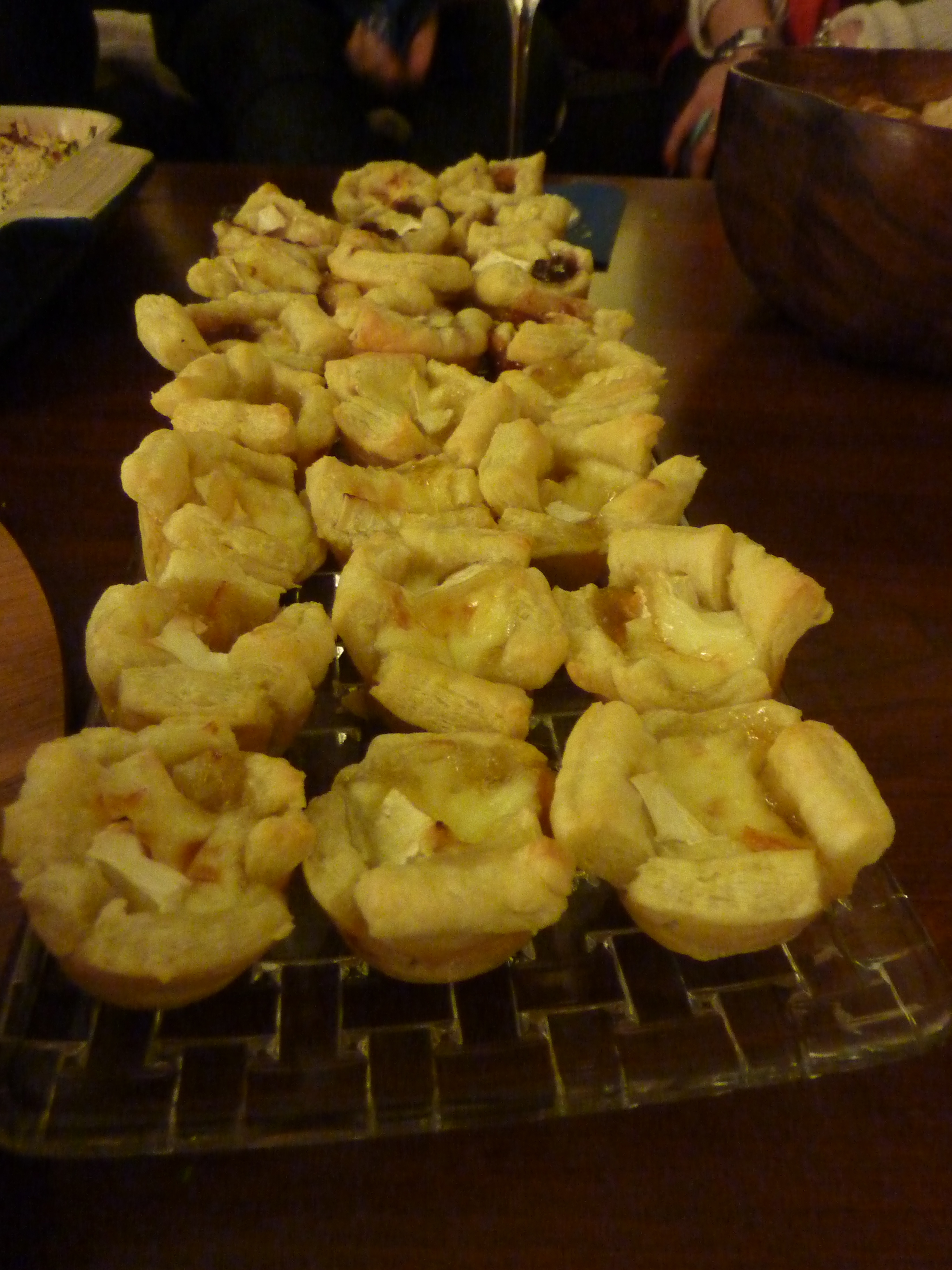 The Baked Brie really was a standout! I used Pepperidge Farm frozen Puffed Pastry, brie and two types of jam – strawberry preserves and Stonewall Kitchen’s Mimosa jam. All you do is use the thawed puff pastry to make a little “cup” in a mini-muffin pan, fill with brie and a dot of jam then bake as directed for the puff pastry (in my case, 400 for 15 minutes). It really is a very easy drop of heaven!