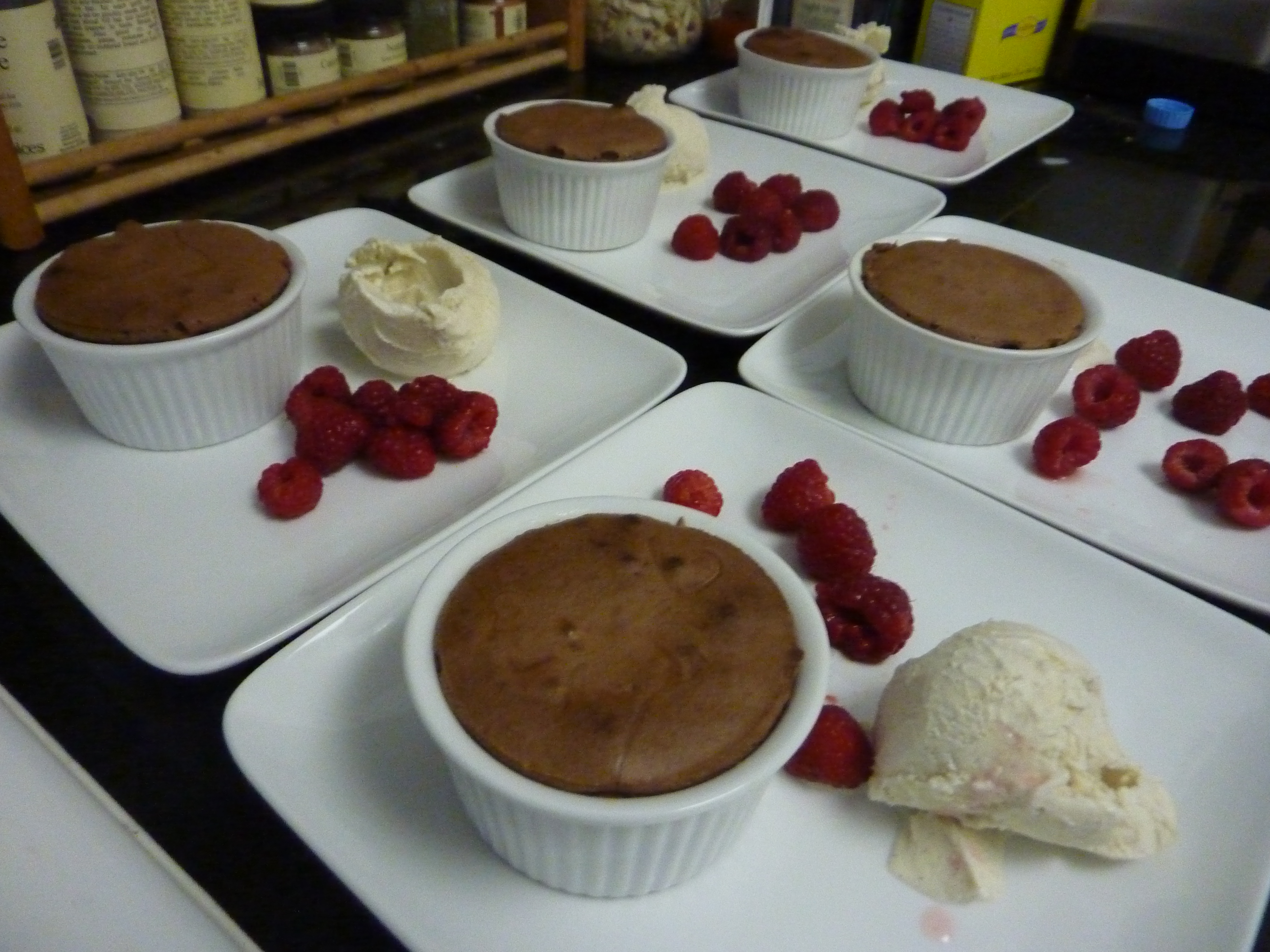 Desert was my favorite Chocolate Lava Cakes! Although I failed (again) at being able to pop them out of the ramekins – we were all happy to eat them as is, with fresh raspberries and Haagen Dazs “five” vanilla ice cream!